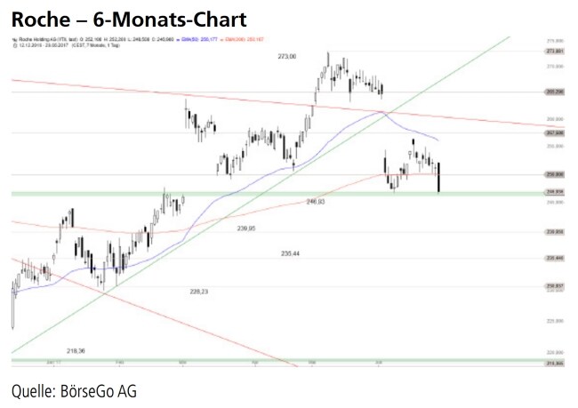Abwärtswelle bis 239,95 CHF, ehe eine leichte Erholung bis