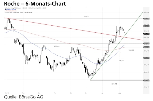 Bei 241,60 CHF verläuft der Aufwärtstrend seit Mai, den die