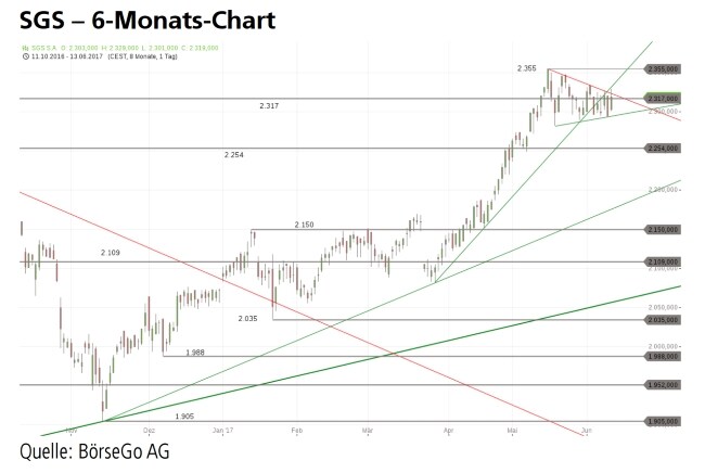 unter die 2.290 CHF-Marke würden aus dem Dreieck nach unten