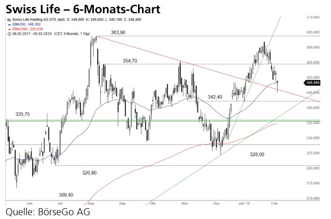 auf Höhe von 335,75 CHF kommen. Erst ein Bruch