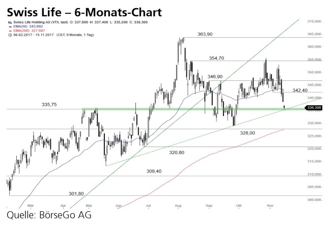 der 335,75 CHF-Marke dürfte sich der jüngste Einbruch bis