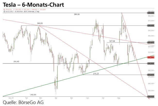unter die 291,42 USD-Marke würde Tesla aus dem mittelfristigen