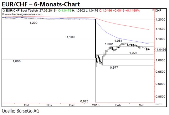 Ausblick: Die Erholungsphase von EUR/CHF ist mit der jüngsten Gegenbewegung leicht ins Stocken geraten. Dennoch haben die Käufer aus unserer Sicht weiterhin die Chance, den Wert in Richtung 1,100 CHF anzutreiben. Die Long-Szenarien: Durch das Unterschreiten der 1,062 CHF-Marke hat EUR/CHF jetzt weiteres Abwärtspotenzial bis 1,025 CHF generiert. An dieser Unterstützung dürften die Bullen jedoch wieder aktiv werden und das Paar nach einer Stabilisierungsphase bis zur 1,062 CHF-Marke kaufen. Bei einem Anstieg über diese Hürde käme es zu einer Erholung bis 1,081 CHF. Diese Barriere dürfte anschliessend hart umkämpft werden. Sollte es den Käufern gelingen, die Hürde nachhaltig zu überwinden, könnte eine Aufwärtswelle bis 1,100 CHF führen. Darüber wäre bereits ein Kaufsignal gebildet und mit einer Fortsetzung der Erholung bis 1,150 CHF zu rechnen. Die Short-Szenarien: Kommt es im weiteren Verlauf dagegen zu einem Bruch der Haltemarke bei 1,025 CHF, wäre ein kurzfristiger Ausverkauf die Folge. Dieser dürfte das Währungspaar bis 1,005 CHF und darunter bis an die Unterstützung bei 0,977 CHF drücken. Auf diesem Niveau müssten die Bullen eine Bodenbildungsphase einleiten, um ein weitreichendes Verkaufssignal zu verhindern. Würde die Marke unterschritten, wäre die Erholung vorläufig beendet. Gleichzeitig droht in diesem Fall ein langfristiger Kursrutsch bis an das Tief des Januar bei 0,828 CHF.