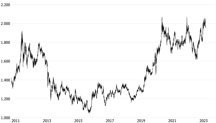 | CHF/CAD | 1,5023 | -0,0005 | -0,03% |