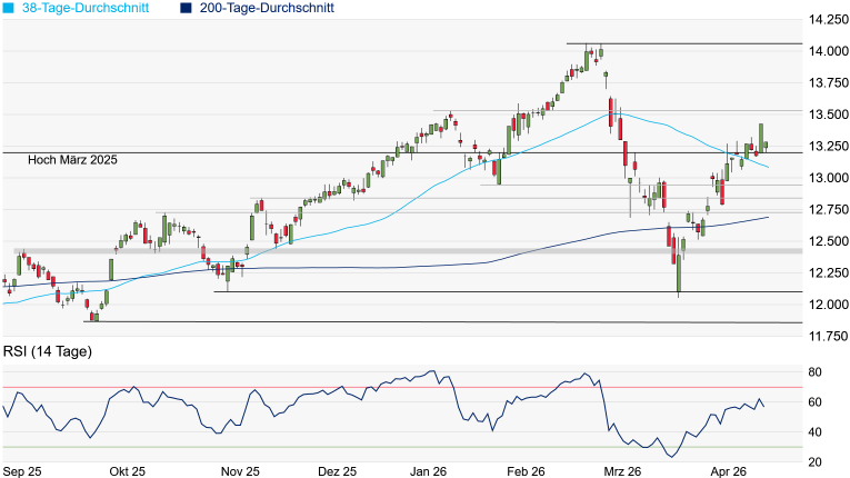 13.000-Punkte-Marke oder das Januar-Tief bei 12.942 Punkten für Halt sorgen.
