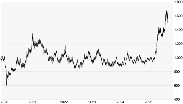 In den Medien wird bei der derzeitigen Edelmetall-Rally meist von Gold und Silber gesprochen. Doch auch Platin gehört zu den Edelmetallen und legte zuletzt teils noch kräftiger zu als Gold und Silber. Der Platinpreis notiert aktuell bei 1.591 US-Dollar und damit gut 75 Prozent über dem Schlusskurs aus dem Jahr 2024. Vor wenigen Tagen kletterte der Platinpreis sogar bis auf 1.723 Dollar nach oben, womit das Plus seit Jahresanfang mehr als 90 Prozent betragen hatte. Gründe für einen