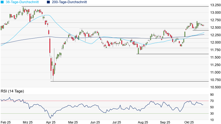 Punkten in den Weg stellen. Das Rekordhoch vom 3. März bei 13.199 Punkten wäre danach auch nicht mehr weit. Auf der Unterseite dürfte zunächst das jüngste Ausbruchsniveau vom Mai bei 12.461 Punkten im Fokus stehen. Bei einem Unterschreiten könnten die beiden gleitenden Durchschnitte der vergangenen 38 respektive 200 Tage, die aktuell bei 12.332/12.266 Punkten verlaufen, noch einmal angesteuert werden.