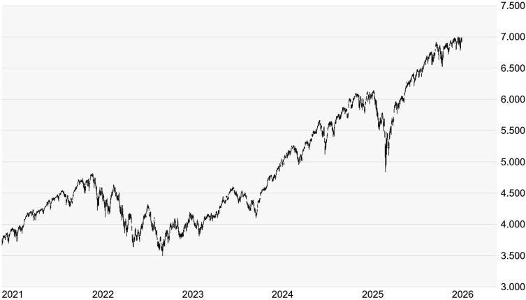 Quelle: Bloomberg. Bitte beachten Sie, dass aus der Wertentwicklung in der Vergangenheit nicht auf die zukünftige Wertentwicklung geschlossen werden kann. | | Charttechnik: Die Märkte scheinen sich aktuell auf Richtungssuche zu befinden. Dies lässt sich recht gut daran erkennen, dass so viele Indizes an runden Marke hängen und der entscheidende Schub nach oben zu fehlen scheint. Der Dow Jones hat die Marke von 50.000 Punkten inzwischen zwar gemeistert, doch blieb das grosse Kaufinteresse danach aus. Der in der Fondsbranche so wichtige S&P 500 hängt seit Wochen an der Marke von 7.000 Punkten fest. Und auch der deutsche Leitindex DAX schafft es derzeit nicht, die