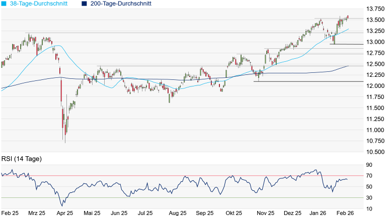 wichtige Januar-Hoch bei 13.529 Punkten konnte der SMI um rund einen Punkt verteidigen. Die Vorgaben für den Start in den heutigen Handel sind in der Früh leicht freundlich, weshalb auf der Oberseite weiterhin vieles möglich erscheint. Auf der Unterseite könnten die aktuell bei 13.296 Punkten verlaufenden 38-Tage-Linie und das März-Hoch bei 13.199 Punkten zunächst für ausreichend Halt sorgen.