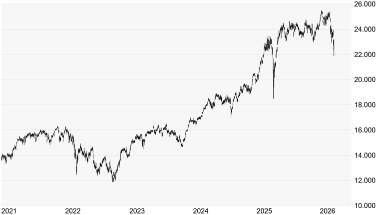 Quelle: Bloomberg. Bitte beachten Sie, dass aus der Wertentwicklung in der Vergangenheit nicht auf die zukünftige Wertentwicklung geschlossen werden kann. | | Charttechnik: Beim DAX drohte gestern akute Absturzgefahr, denn mit dem Unterschreiten des Zwischentiefs vom 21. Februar 2025 bei 22.226 Punkten hatte sich weiteres Korrekturpotenzial bis zum Korrekturtief vom April 2025 bei 18.490 Punkten eröffnet. Doch der DAX zog noch einmal den Kopf aus der Schlinge und holte sich die Februar-Marke zurück. Im Hoch ging es sogar kurzzeitig wieder über das November-Tief bei 22.943 Punkten, womit sich das Chartbild deutlich zu entspannen drohte. Doch der DAX ging deutlich