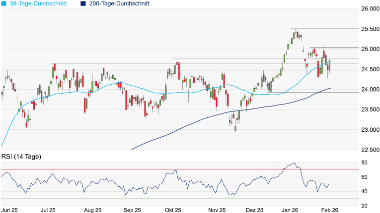 würden sich nur noch das Zwischenhoch vom 27. Januar bei 25.020 Punkten und das Zwischenhoch vom 3. Februar bei 25.099 Punkten in den Weg stellen, ehe das Rekordhoch vom 13. Januar bei 25.508 Punkten in den Fokus rücken könnte. Doch Euphorie scheint trotz der guten Vorgaben von den asiatischen Börsen nicht unbedingt aufkommen zu wollen, weshalb der Unterstützungsbereich zwischen 24.771 und 24.479 Punkten zunächst nicht aus den Augen verloren werden sollte.