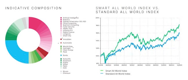 In Zeiten wirtschaftlicher Unsicherheiten und technologischer Umbrüche ist es entscheidend, heute die Weichen für morgen zu stellen. Das Smart All World ETP (ISIN: CH1353016715) bietet Anlegern die Möglichkeit, breit gestreut in die entscheidenden Zukunftssektoren zu investieren - ohne dabei auf ein nachhaltiges und risikooptimiertes Portfolio zu verzichten.