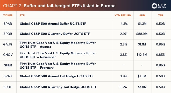 Abbildung 2: In Europa notierte Buffer- und Tail-Hedged-ETFs