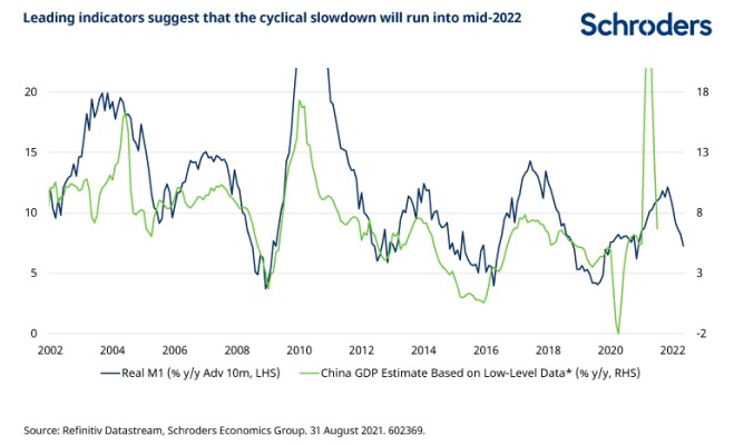 Insgesamt jedoch spielen diese Disruptionen nur eine untergeordnete Rolle im Vergleich zu den grossen makroökonomischen Trends, die in den kommenden Monaten wahrscheinlich zu einem zyklischen Nachlassen des Wachstums führen werden. Wie wir im Frühjahr hervorhoben, erreichten zyklische Frühindikatoren wie der Kreditimpuls und die reale Geldmenge M1 im Herbst des vergangenen Jahres ihren Höhepunkt, nachdem die Behörden ihre Politik insbesondere im Hinblick auf die Kreditversorgung der Wirtschaft und des Immobiliensektors gestrafft hatten.