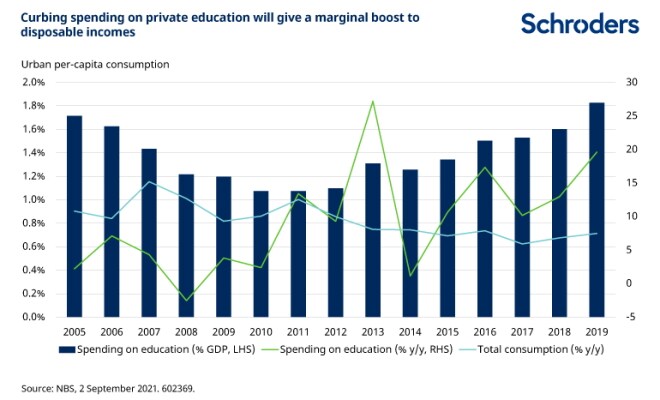 Unterdessen strebt die Regierung seit Langem eine Neuausrichtung der Wirtschaft zum Konsum an - ein bemerkenswertes Merkmal der Erholung von der Covid-Rezession war die laue Verbraucheraktivität. Ein Aufstieg in der Wertschöpfungskette in der Industrie durch F&E würde höhere Einkommen ermöglichen. Dies wird eindeutig Zeit in Anspruch nehmen. Die jüngsten Massnahmen, um gegen das private Bildungswesen vorzugehen und die Abzüge zu begrenzen, die Unternehmen von Arbeitnehmern in der Gig Economy machen können, deuten allesamt auf einen Versuch hin, das verfügbare Einkommen der privaten Haushalte zu stützen, auch wenn die Auswirkungen wahrscheinlich gering sein werden.