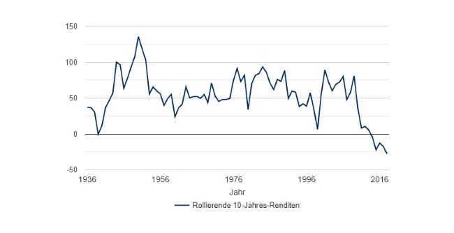 Wie der Chart unten zeigt, war der Performance-Rückstand von Substanzwerten in den späten 1930er- und 1990er-Jahren zwar stark ausgeprägt, aber mit etwa vier bzw. zwei Jahren auch nur von kurzer Dauer. Im Vergleich dazu begann die aktuelle unterdurchschnittliche Wertentwicklung im Jahr 2009 und dauert somit bereits seit zehn Jahren an.