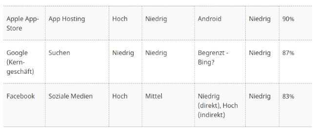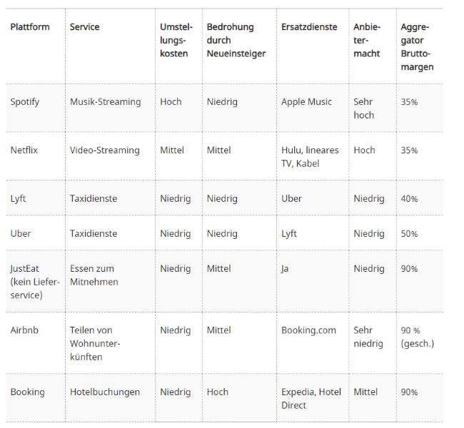 Mithilfe des analytischen Instruments "Porter’s Five Forces Framework" - Wirtschaftsexperten bedienen sich dieses Tools zur Bewertung der Wettbewerbsfähigkeit eines Unternehmens - lassen sich einige Ähnlichkeiten über die verschiedenen Plattformen hinweg feststellen: