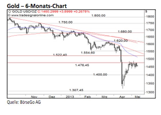 Rückblick: Mit dem Rückfall unter die Unterstützung bei 1.554,60 USD setzte sich bei Gold ein massiver Kurseinbruch in Gang, der zum Bruch der Unterseite des langfristigen Seitwärtsmarktes bei 1.522,40 USD führte.