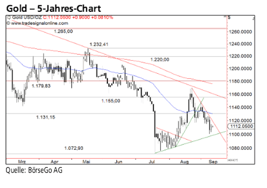 Rückblick: Der Sommer hatte für Gold vielversprechend begonnen, denn nach dem starken Einbruch an die langfristige Unterstützung bei 1.072,93 USD setzte eine Erholung ein...