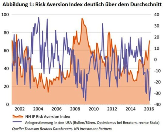 Die Erfahrung lehrt, dass die Märkte häufig irreführende Signale senden und Turbulenzen in der Regel geballt auftreten. Nachdem die Märkte uns im ersten Quartal des vergangenen Jahres an der Nase herumgeführt hatten, war die unerwartet scharfe Korrektur bei Bundesanleihen im zweiten Quartal der erste Hinweis auf tiefgreifendere, anhaltendere Schwankungen am Markt. Gleichzeitig markierte dies den Beginn eines nachlassenden Risikoappetits bei der Anlegerschaft. Das zeigte sich u. a. an ungewöhnlich hohen Risikoprämien. Auch die Stimmungsbarometer stürzten ab.