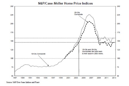 Auch die Anzahl der Hausverkäufe hat in den vergangenen Monaten angezogen und erreichte Ende Januar 2013 4,9 Millionen Einheiten, ein Plus von 9 % gegenüber dem Vorjahresmonat. Auch hinsichtlich der Preisentwicklung kehrt der Optimismus zurück. Nachdem der als Preisbarometer stark beachtete S&P-Case-Shiller-Index zwischen 2006 und Mai 2012 rund 30 % eingebüsst hatte, ist er seither wieder gestiegen. Allein in den letzten 12 Monaten per Ende Januar 2013 um 8 %. In einer Umfrage der Hypothekenbank Fannie Mae im Februar 2013 erwarteten fast 48 % der Konsumenten steigende Hauspreise in den nächsten 12 Monaten. Ein Jahr zuvor hatte der Anteil erst 27 % betragen.